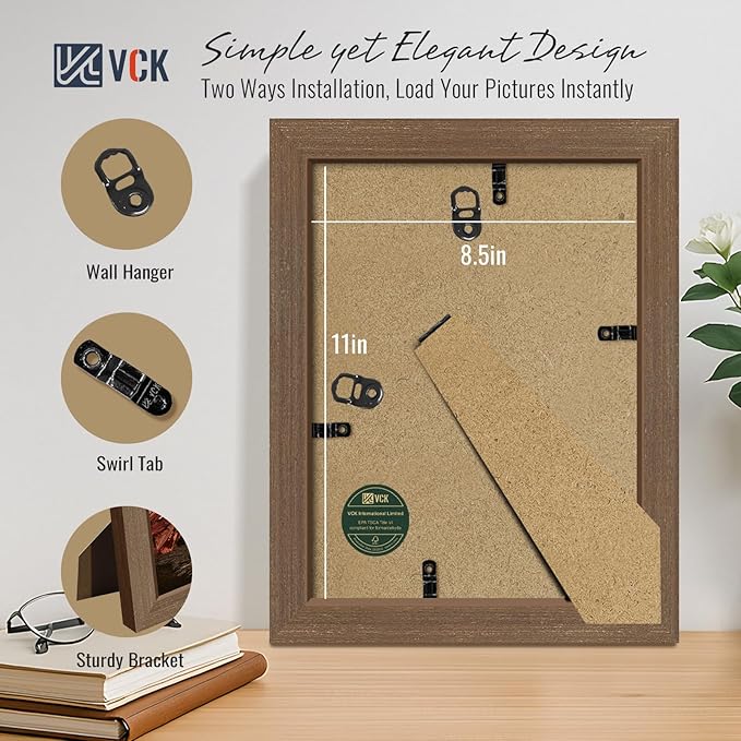 - Authentic Wood Grain & Wide Border Design: Elevate your space with VCK's dark brown 8.5x11 wood frame. Featuring a rich dark brown finish and authentic wood grain, it brings nature's timeless elegance to any room, office, gallery, or hallway