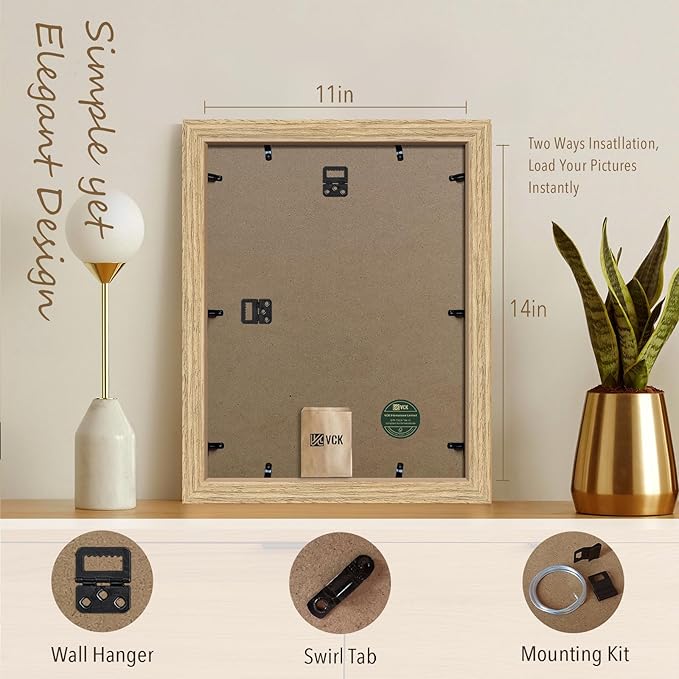 - FSC Frame: Simple yet elegant oak wood grain, A cultural heritage of classics and craftsmanship, satisfied, or money back. VCK is willing to sacrifice much more premium wood than other brands to craft frames extremely sturdy and durable. Corners and backboards are strengthened to say bravo to all your precious moments.
