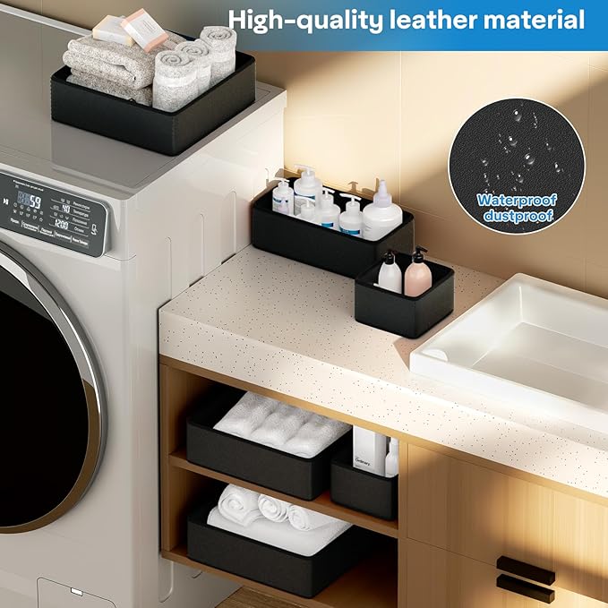 Vegan Leather Drawer Organizers,12 Pack Makeup Storage boxes,Vanity Drawer Luxury upgrade,Bedroom fabric Drawers replacement,bathroom organization and storage Optimal solution