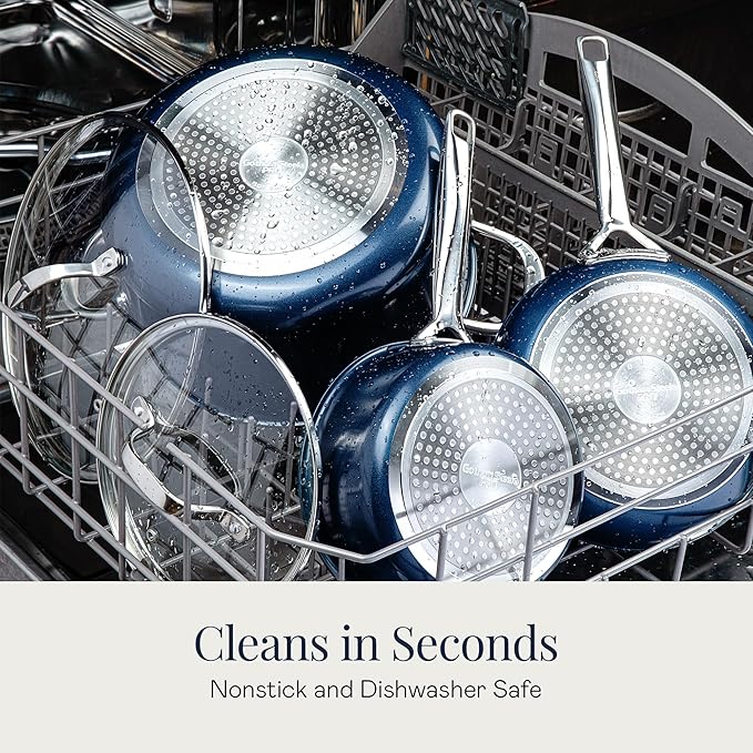 GOTHAM STEEL PRO 13 Pc Ceramic Cookware Set Nonstick, Pots and Pans Set Non Stick for Kitchen, Hard Anodized Induction Cookware, Non Toxic Made Without PFOA PFOS, Oven & Dishwasher Safe – Navy Blue