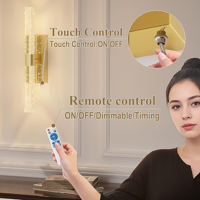- 【Battery sconces wall decor】The LED crystal wall sconce features a metal brass finish and sturdy bubble crystal cylindrical, creating the perfect atmosphere for your bathroom. Modern wall sconce light fixture design is simple yet elegant, adding a touch of aristocracy to any space.