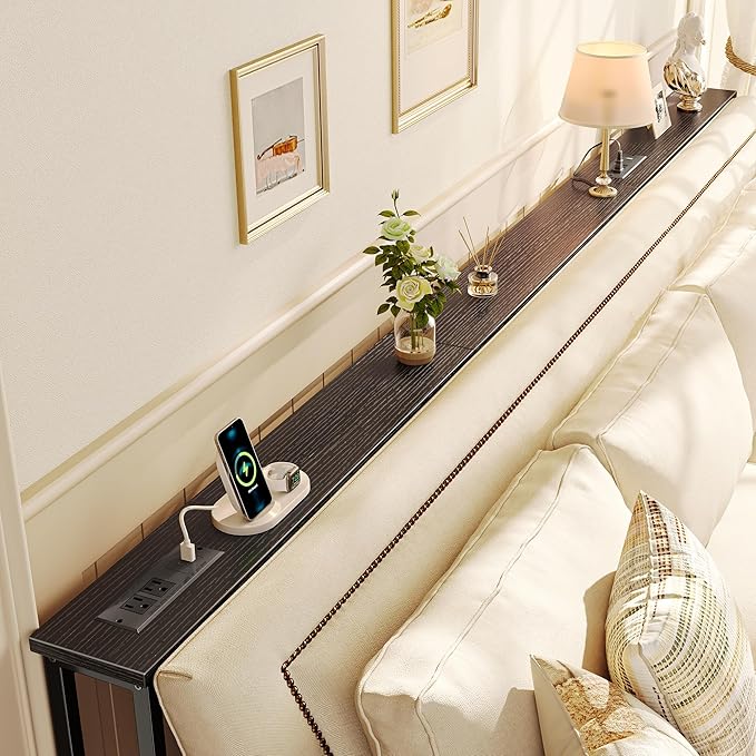 - 【Easy to Assemble & Fits Anywhere】Whether behind a sofa, in an entryway, or along a narrow wall, this couch table behind sofa is the perfect storage solution for tight spaces. Designed to leave room for wall vents and easy airflow. Comes with clear instructions, labeled parts, and tools included, you'll have this sofa table with outlet set up in no time
