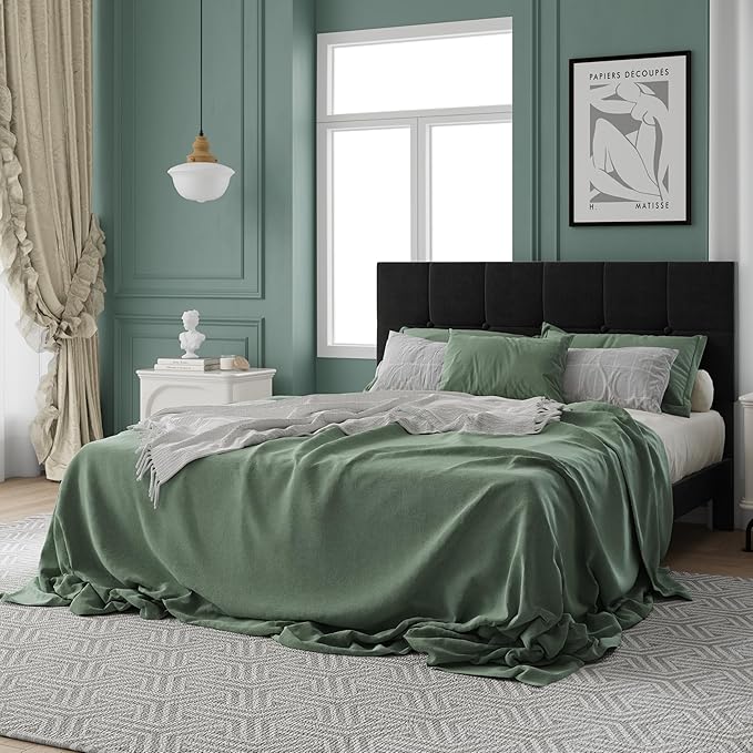 - GET A NEW LOOK: The queen size bed frame features a velvet upholstered headboard with chic diamond buttons to create a minimalist focal point that elevates your space and transforms your bedroom from cluttered to sophisticated and elegant in minutes.