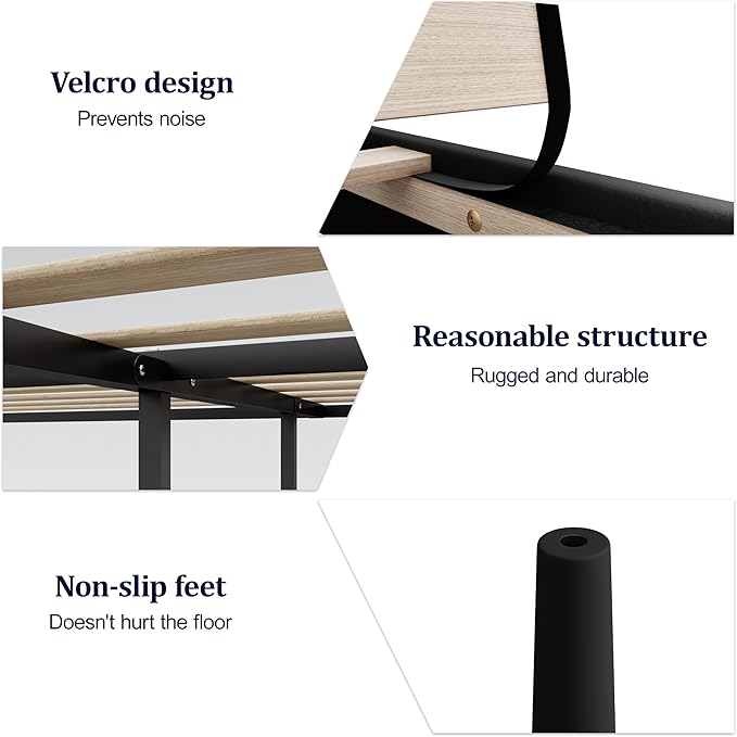 - DURABLE: Constructed of a heavy-duty metal frame and sturdy wood slats, it can withstand up to 1,000 pounds. Non-slip feet prevent shifting and scratching the floor.