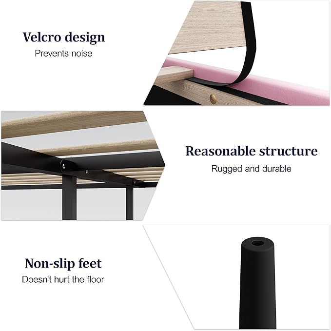 - DURABLE: Constructed of a heavy-duty metal frame and sturdy wood slats, it can withstand up to 1,000 pounds. Non-slip feet prevent shifting and scratching the floor.