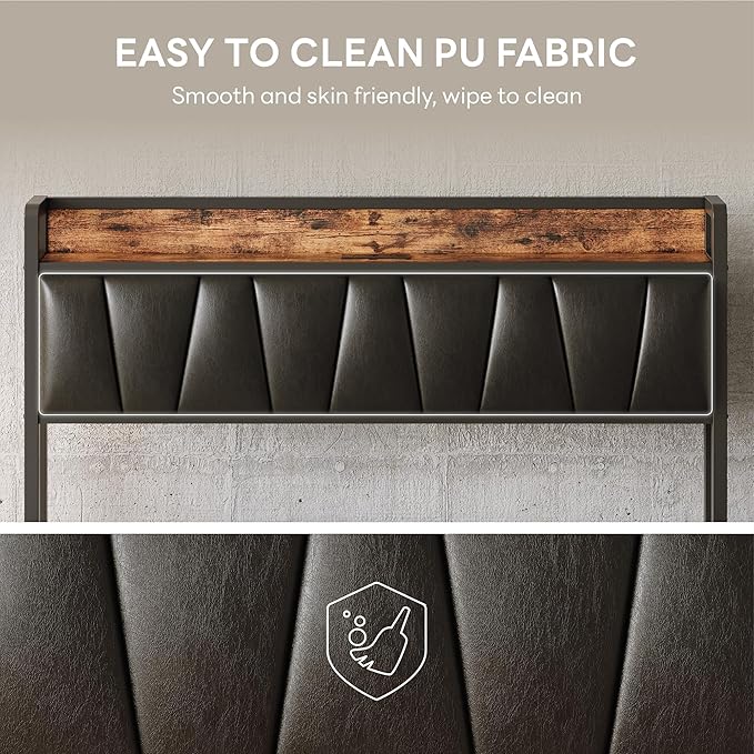 LIKIMIO Full XL Bed Frame, Storage Headboard with Charging Station, Solid and Stable, Noise Free, No Box Spring Needed, Easy Assembly(Vintage and Black)