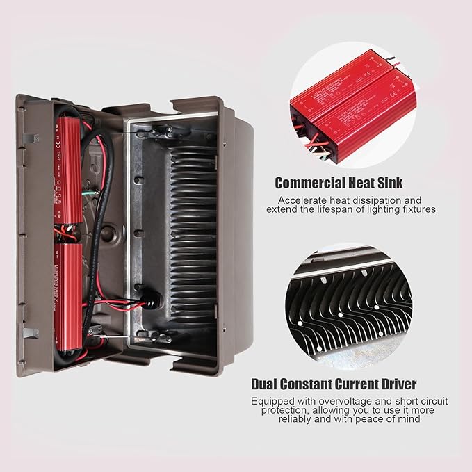 - Durable and Long Lifespan- Made of die cast aluminum material with a commercial grade bronze coating on the surface, combined with polycarbonate impact resistant material, it effectively resists various external infringements. With a lifespan of up to 50000 hours, stable brightness and reliability can be maintained for a long time without frequent maintenance
