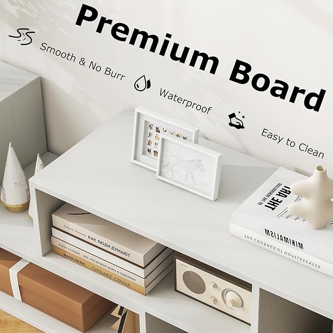 - Modern Style, Wide Use: The sleek, minimalist design of the display TV table adds a touch of sophistication, seamlessly blending with your living room or bedroom. Apart from being used as a TV stand, it also serves perfectly as a bookcase, display stand, console table etc.