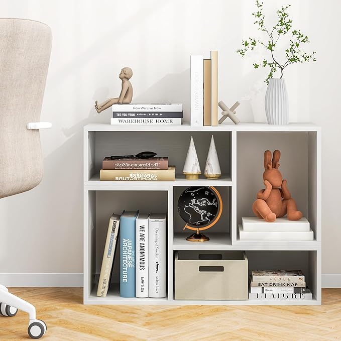 Tangkula 2 Pieces L-Shaped TV Stand, Free-Combination Entertainment Center for TVs up to 55 Inch, Modern TV Media Console Table with 4 Open Cubes, DIY Bookcase Shelf for Living Room (White, 2 pcs)