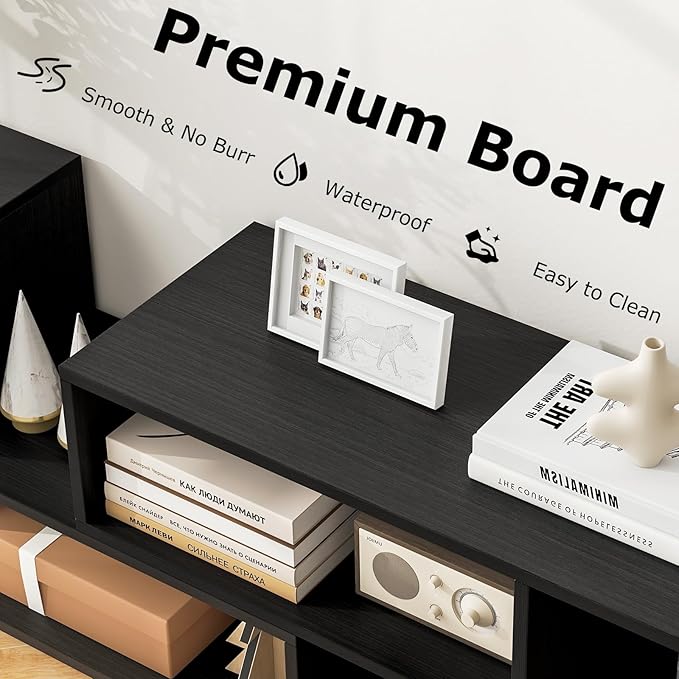 - Modern Style, Wide Use: The sleek, minimalist design of the display TV table adds a touch of sophistication, seamlessly blending with your living room or bedroom. Apart from being used as a TV stand, it also serves perfectly as a bookcase, display stand, console table etc.