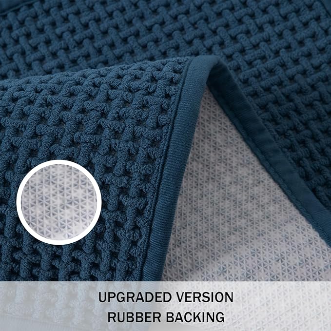 - Upgraded Non-Slip Backing: Our bathroom mats feature natural rubber backing, increasing slip resistance of a floor surface. They tightly grip smooth surfaces without skidding, and hence prevent and reduce the risk of falls for kids and the elderly. Say goodbye to slippery PVC/TPR bathroom mat—step out safely with our secure, stable design