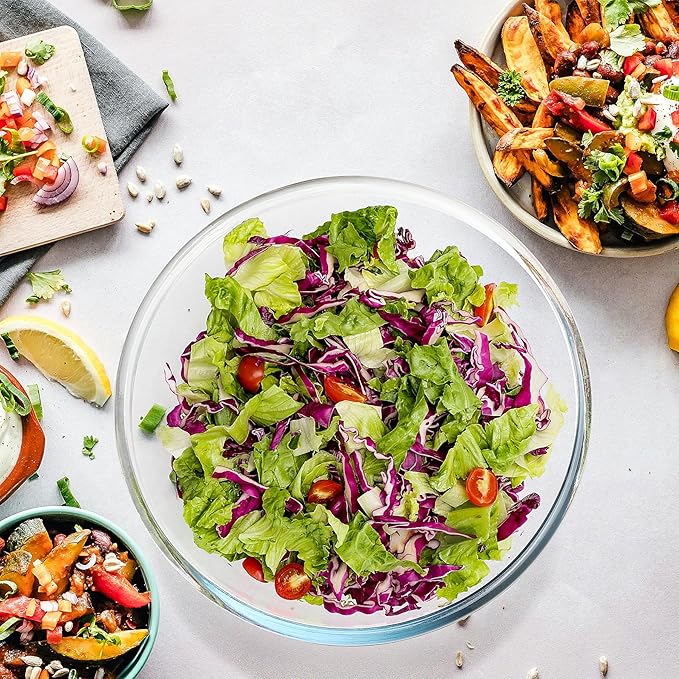 - Safe & Non-Toxic: This large glass mixing bowl is free from harmful chemicals, making it a safe choice for food preparation. Its sturdy base prevents slipping while mixing or whisking.