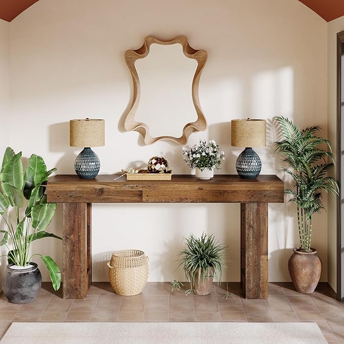 Tribesigns 63-Inch Long Console Table, Farmhouse Wooden Sofa Table Behind The Couch, Narrow Entryway Table for Entrance, Hallway, Living Room (Mix Brown)