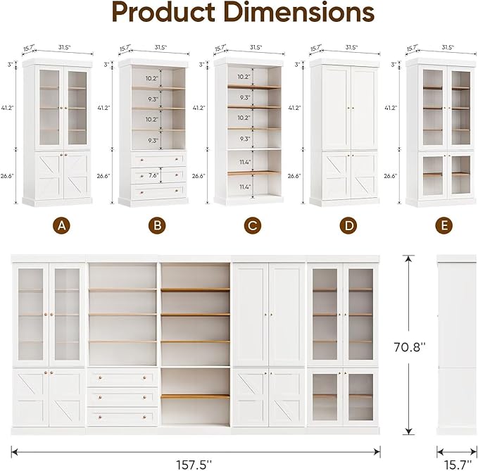 - 【Easy Assembly, Hassle-Free Setup】 Designed for convenience, this farmhouse bookshelf comes with clearly labeled parts and step-by-step instructions for quick and effortless assembly. Whether used alone or as part of a modular system, this bookcase with doors offers a stylish and practical storage solution.