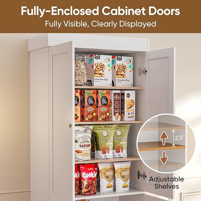 Vyre 70.8" Tall Farmhouse Bookshelf with Doors, Modular Bookcase with 6-Tier Adjustable Shelves, Large Storage Cabinet for Kitchen, Living Room, White, Set of 2