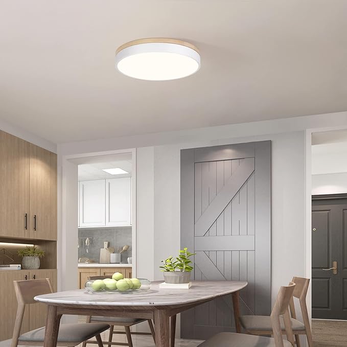 - Modern & Simple Design: 36 W LED Dimmable light fixtures ceiling mount lamp framed by eco-friendly oak wood and metal, the light cover is high transmittance acrylic. Drum flat minimalist style with protable easy install. As equivalent to 200-250 W traditional incandescent light