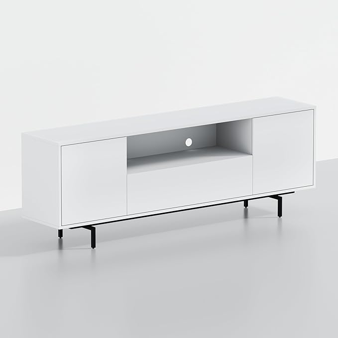 - Modern 75-Inch Console With Premium Finishes: This 75-inch wide entertainment console combines clean lines, hidden Euro-style hinges, and a sleek metal base to complement contemporary and modern living room décor. Thoughtful design and quality materials make it a stylish and practical centerpiece for your home.