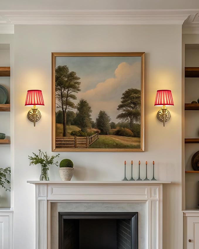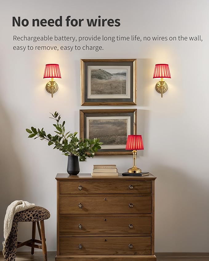 KDG Cordless Wall Sconces Set of 2, Small Wireless 5200mAh Rechargeable Battery Fabric LED Wall Lamps, Portables Lightings for Wall Painting, Living Room, Bedroom, Hallway, Gifts, Night Light (Red)
