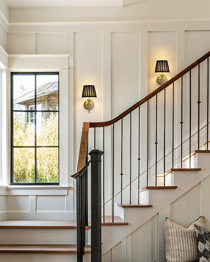 - Metal material: LED multifunctional wall sconce, metal material, high hardness. Gold electroplating process, black frosted process, delicate texture, not easy to rust and fade, durable. Fabric lampshade, filtered light is not harsh, take care of your eyes. Lamp body tightly combined design, thick and sturdy, ideal for home wall lamps