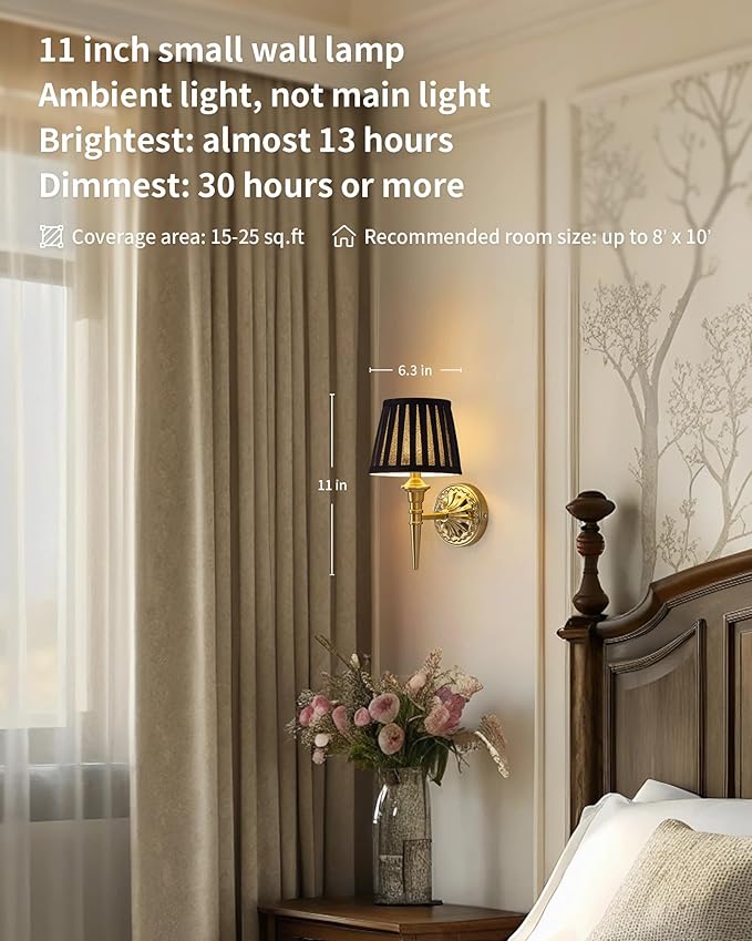- Easy to install: This modern wall sconce can cover an area of 15-25 square feet, Recommended room dimensions: 8’x10’or smaller. Screw the base plate to the wall and secure the wall sconce to the base plate. The base plate can be easily removed for charging. The baseplate has a Type-C charging port.