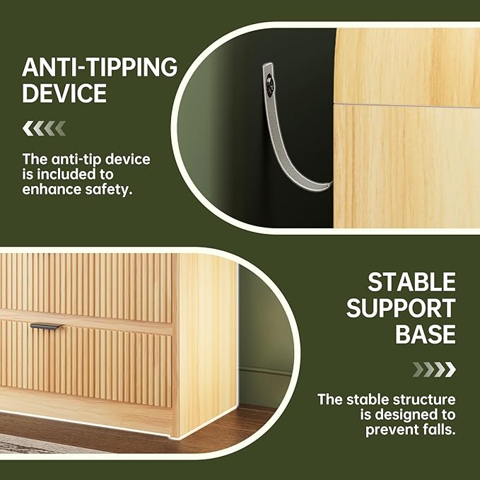 - 【Solid Material & Study Construction】Crafted with durable, scratch-resistant MDF and P2-certified engineered wood, dressers & chests of drawers deliver lasting style. fluted dresser has exquisite texture, but also ensure long-term use and scratch resistant. For easy cleaning, just wipe with damp cloth and get it air-dried.