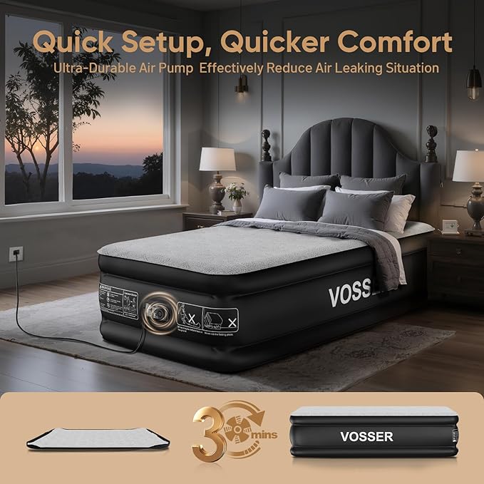 - 【Worry-Free Quality】As a trusted brand, VOSSER ensures quality and satisfaction with our air mattress, offers a risk-free 2-year manufacturer warranty for all its inflatable beds. Please do contact us for any issues, and we will respond promptly within 24 hours