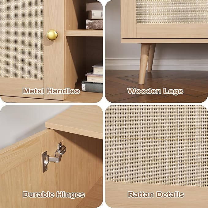- 【Elegant Rattan Design】- This low-profile TV stand combines natural wood tones and woven rattan doors to bring warm, organic texture to your living room or sitting area. The farmhouse-inspired design blends seamlessly with boho, coastal, or modern rustic decor, adding a touch of relaxed elegance to your space.