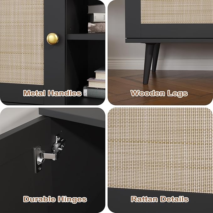 - 【Elegant Rattan Design】- This low-profile TV stand combines natural wood tones and woven rattan doors to bring warm, organic texture to your living room or sitting area. The farmhouse-inspired design blends seamlessly with boho, coastal, or modern rustic decor, adding a touch of relaxed elegance to your space.