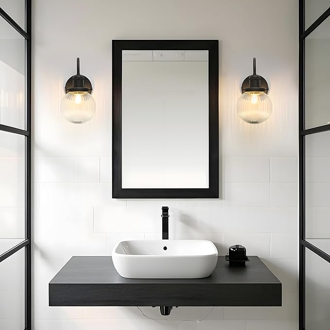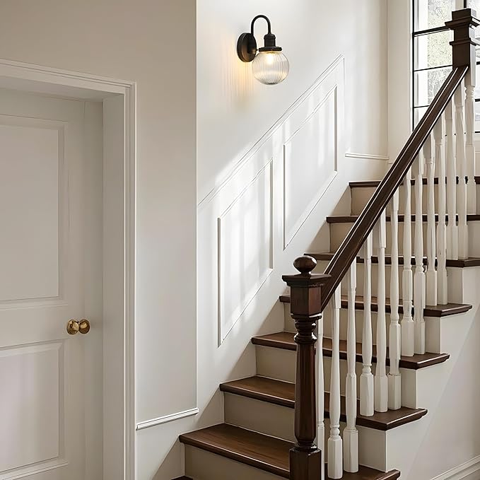 - DESIGN: Industrial Vintage Wall Sconces. Metal gooseneck lamp holder with a striped clear glass ball shade, premium material, and handmade craft, which makes each one truly special. The wall light sconce fixture will be a perfect art decoration for your modern or retro space