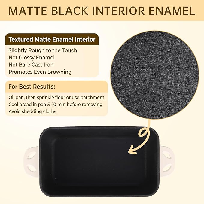 - Golden Crust: Enamel cast iron bread loaf pan with lid delivers even heat; creates a crispy crust and soft interior in sourdough, banana bread and sandwich loaves