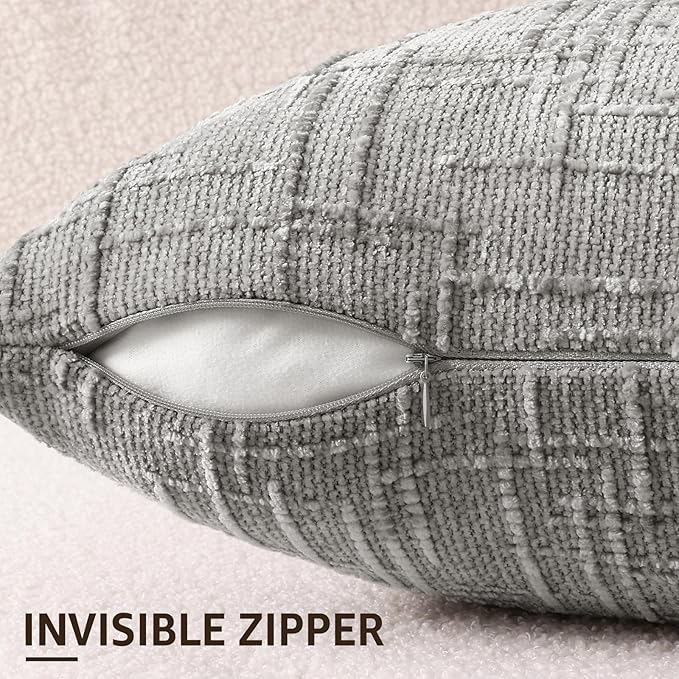 - Care Instruction: Including 18 x 18 Inch/ 45X45 cm pack of 2 neutral grey pillow covers Without Inserts. The chenille pillow covers are easy to care for. Machine washable in gentle mode. Tumble Dry Low. Do Not Iron