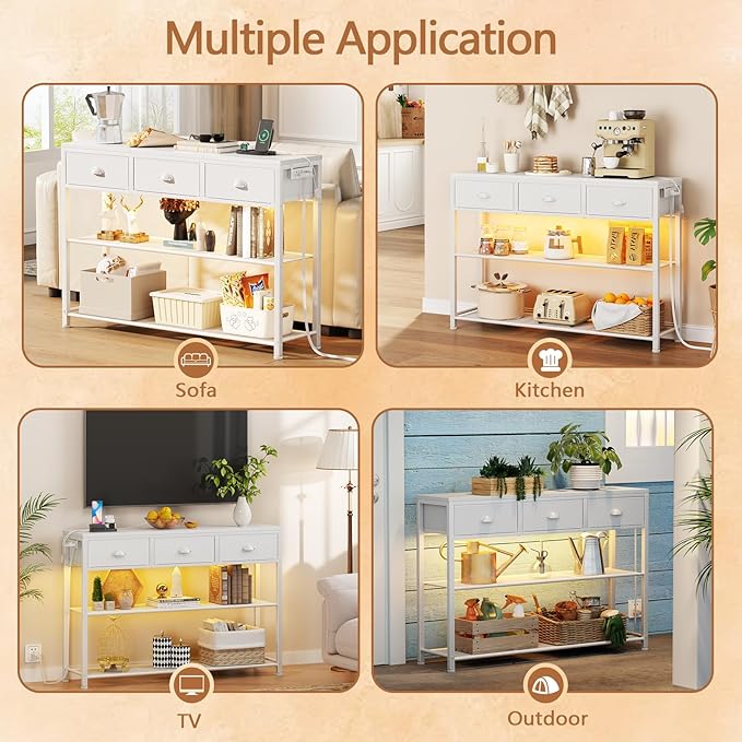 - 【3 Fabric Storage Drawers】3 Spacious fabric drawers provide organized storage while allowing airflow. Console table with storage features easy-pull handles for convenient access and 2 shelves for organization. Made from durable, breathable material that keeps contents protected yet easily accessible. Entryway table with storage is perfect for storing daily essentials while maintaining a clean, clutter-free look