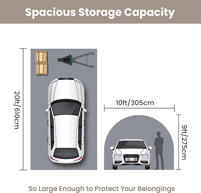 - ADEQUATE SIZED SPACE: With a spacious 10x20x9ft dimensions,It can serve as: A storage shed for firewood, lawn mowers, and outdoor equipment. A garden workshop for maintenance and DIY projects. An outdoor utility shelter for tools and seasonal items. A versatile event space for family gatherings, picnics, camping, or even as a tent base.