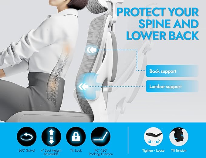 - Ergonomic Office Chair: Experience unparalleled support with our ergonomic office chair, designed to provide comprehensive assistance for your head, back, hips, and arms. Tailored lumbar support ensures your comfort and well-being. Suitable for people of about 5'5" to 6'2". Easily adjust seat height, headrest, backrest, and flip-up arms to cater to diverse needs, offering comfortable support during extended periods of sitting