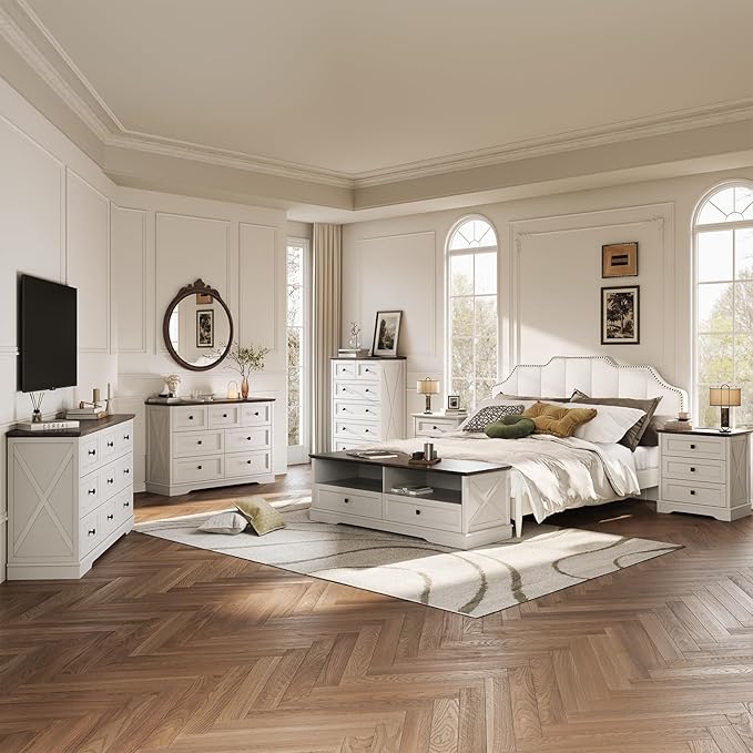 - Aesthetic Furniture:The X-shaped design on the side panels of this rustic chest of drawers adds farmhouse style, complete with delicate pulls, and a white finish paired with brown wood tops, combining vintage elements to bring the perfect visual touch to your home. It's a simple yet striking combination for those who love vintage style. The storage cabinets are exquisitely designed to add a reliable and aesthetically pleasing look to your home