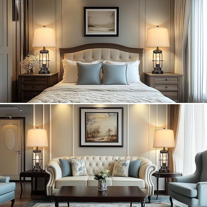 - 【Rustic industrial lamp with night light】: The lamps for bedrooms with nightlights provide you with more lighting choices. The linen lampshade of table lamps for bedroom is matched with the bronze industrial-style metal lamp stand, with 2700K warm light, creating a unique farmhouse lamp that boasts both industrial and retro style. The metal column on the lampstand and the layered design make the glow of the light unobstructed to add an antique retro atmosphere to your home.