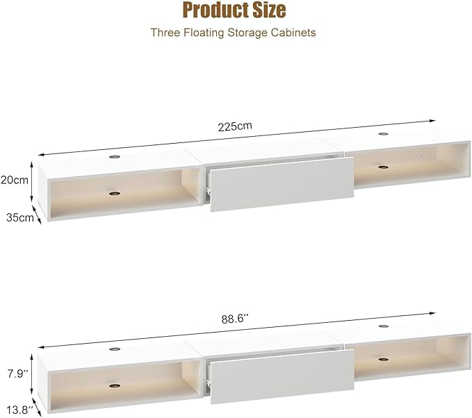 - Space Saving Wall-Mounted Floating TV Shelf and Ample Storage Space: Wall-mounted floating shelf design not take too much space and makes room for floor space. This floating TV console shelf can be used to display and store multiple devices and decoration. The wall-mounted TV cabinet makes full use of the vertical space, keeping the floor space from clutter free and making it convenient for you to clean.