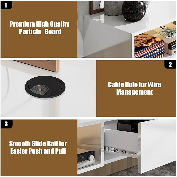 - Entertainment Center with 2 Cable Management: The holes on the tabletop allows cables to pass through various devices, arranging all wires and hiding them out of sight, keeping your entertainment center clean and tidy. The wire management also keeps your cords from getting tangled and makes it easy to plug in all of your devices.