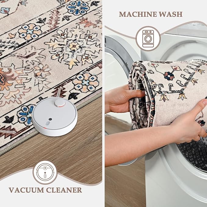 - 【Stress-Free Cleaning Magic】Say goodbye to difficult cleaning. Our machine washable rug handles spills, dirt, and daily mess with ease—just toss it in the washer for a fresh, clean look. Ideal for busy family homes with kids or pets