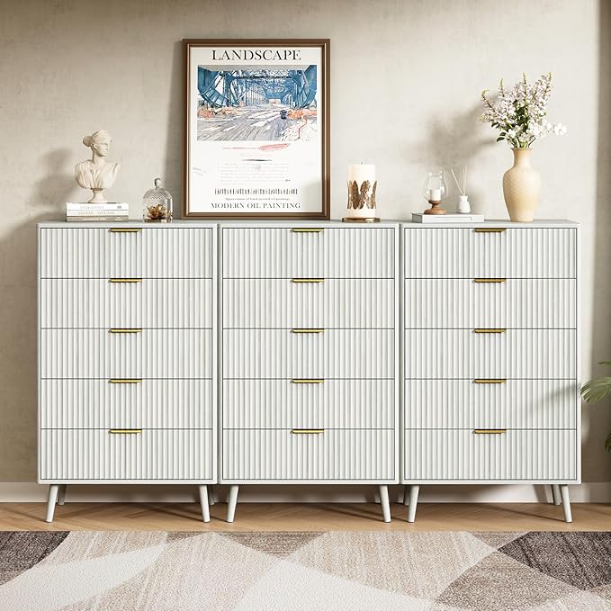 - Modern Dresser with Unique Design: Elevate your bedroom decor with this dresser. Its sleek modern design effortlessly blends with any interior style, adding a touch of elegance and charm.