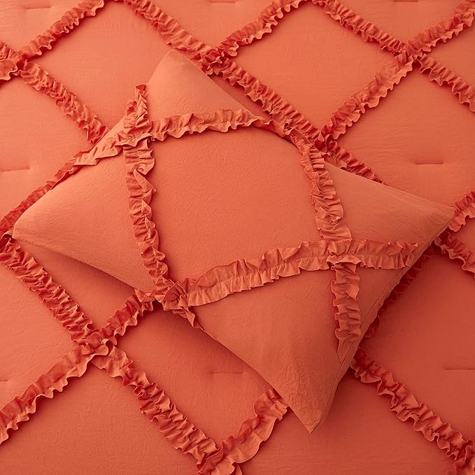 Bonlino Queen Comforter Set Soft Bedding - 3 Pcs Tufted Decor Fluffy Comforter Boho Bed in a Bag with Cute Lightweight Pillowcase for Dorm Farmhouse Bedroom Luxury Gift(Orange)