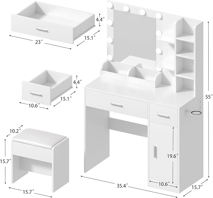 - Easy Assembly:The white makeup vanity set comes with tools and numbered accessories, very easy to assemble following the step-by-step instructions