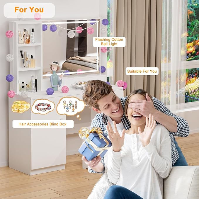 - Perfect for Special Moments: Surprise your loved ones with this adorable vanity set! Whether it's for your daughter, wife, girlfriend, or anyone special, this vanity comes with a blind box containing cute hair accessories and festive cotton ball flashing lights. Create unforgettable memories by celebrating together under the beautiful glow of the vanity's LED lights.
