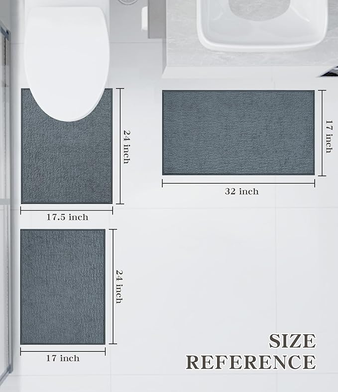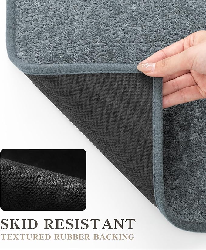 - 【Durable】Say goodbye to fraying edges and pulled threads, each edge of the bath rugs for bathroom is bordered with a durable cloth and the trim is sewn well, don't worry the braid chenille will come undone with abrasion or pulling. It does not collapse, deform, shed hair or fade. Used and cleaned many times, this soft bathroom rug set is still as new mat