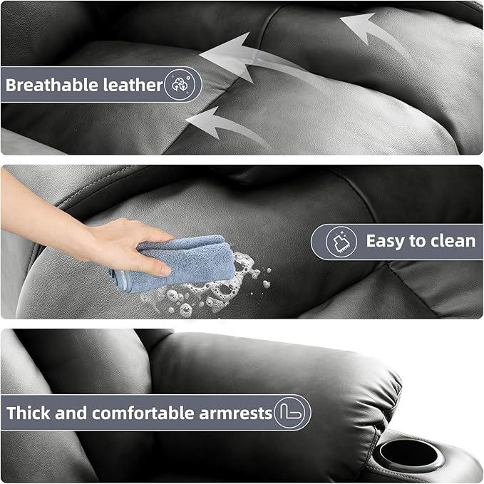 - [Comfortable and Durable]Experience unprecedented comfort and durability. Our leather material is not only breathable, but also durable, ensuring a smooth and soft feel, making you more relaxed. The backrest, seat cushion, and armrests are all filled with high-density sponge, which conforms to ergonomic principles and can tightly embrace your body. The sturdy metal frame can withstand a maximum weight of 350 pounds, ensuring long-lasting and reliable use