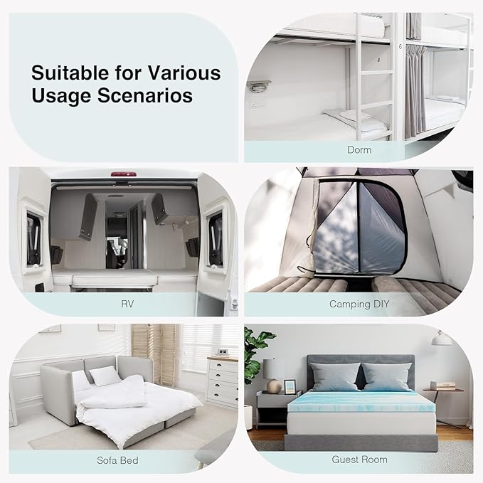 - 【Easy Setup】This mattress topper full is quick and easy to set up. Unbox, unroll and let it fully expand within 24-48 hours. Perfect for DIY use on your bed, sofa, or even in an RV, this full memory foam mattress topper delivers the comfort and support you need wherever you go