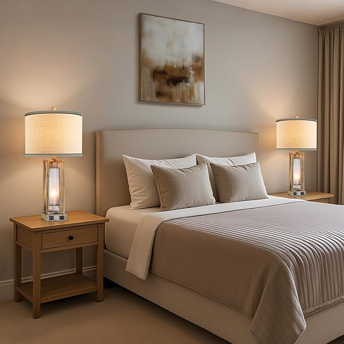 - Convenient Dual Button Switch: The bedside lamps are designed with top and bottom dual lights with a convenient dual switch function, which allows you to independently control two light sources - top and bottom part - to meet your different lighting needs with just a click of a button. It is a great choice for bedroom nightstands, living room side tables and study areas.