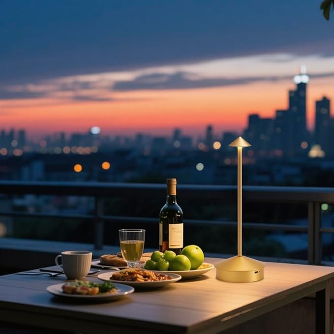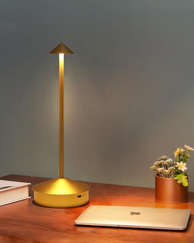 Modern Cordless Table Lamp, 6000mAh Rechargeable Table Lamps, Portable Touch LED Lamp, Outdoor Waterproof Dimmable Cordless Rechargeable Table Lamps for Restaurant/Patio/Outdoor (1 Pcs Gold)