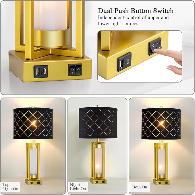 - Dual Push Button Switch: The bedside lamps have two independent switches to control the main light and night light respectively. Main light only/night light only/double on/double off, there are multiple lighting options to meet different lighting needs. This table lamp is a great choice for living room, bedroom, entrance, study, office.