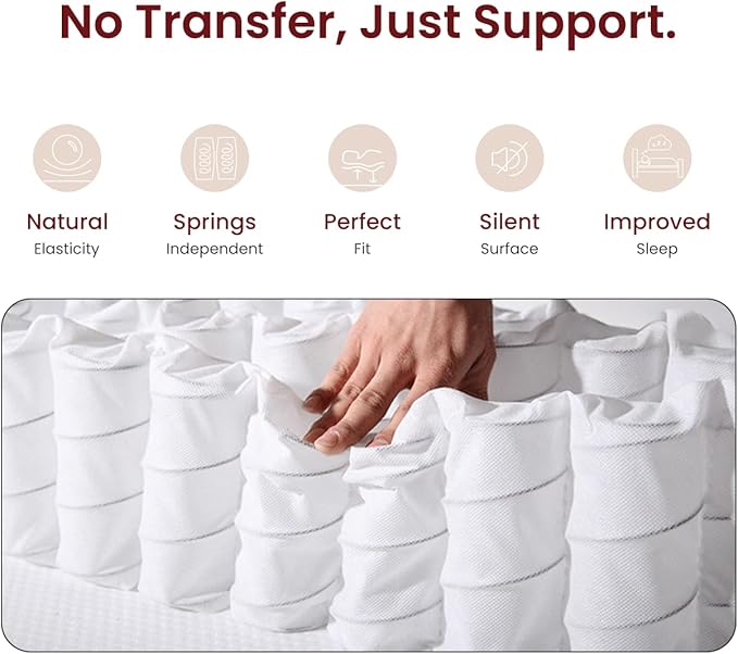 - Reduce Partner Disturbance: Responsive coils isolate motion so you and your partner stay undisturbed. Reinforced edges prevent sagging and expand your usable sleep surface — stable, quiet, and durable